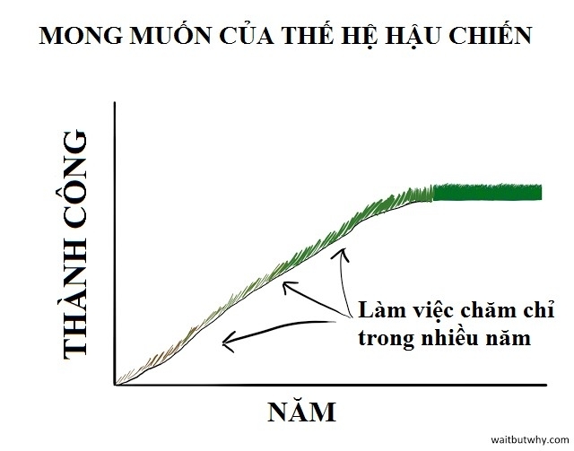 Điều ảo tưởng thứ hai của thế hệ 9X đến từ mong đợi cho sự nghiệp. Trong khi bố mẹ Tuấn mong đợi rằng sự lao động chăm chỉ sẽ dẫn đến thành quả trong sự nghiệp thì Tuấn lại cho rằng một sự nghiệp tốt sẽ đến với những người nhiều tham vọng như hắn, vấn đề là thời gian và hướng đi thế nào thôi (phải khôn hơn người khác). Mong đợi về sự nghiệp của Tuấn sẽ giống thế này: