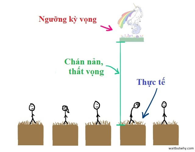 Đó là một công thức vô cùng dễ hiểu đúng không? Khi thực tế cuộc sống của bạn cao hơn hoặc bằng với ngưỡng kì vọng, bạn sẽ cảm thấy hạnh phúc. Ngược lại, khi thực tế thấp hơn ngưỡng kì vọng, bạn sẽ cảm thấy không hạnh phúc. Ví dụ như bạn kì vọng lương mình nghìn đô một tháng, nhưng thực tế bạn chỉ kiếm được 8 triệu thôi, lúc đó bạn sẽ không hài lòng và cảm thấy không hạnh phúc.